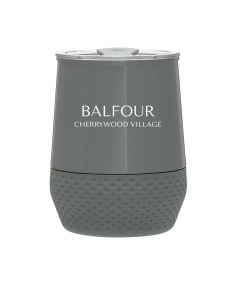 12 oz double wall 18/8 stainless steel thermal tumbler with copper vacuum insulation, push-on lid, matching swivel closure, and removable silicone base.