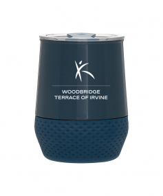 12 oz double wall 18/8 stainless steel thermal tumbler with copper vacuum insulation, push-on lid, matching swivel closure, and removable silicone base.