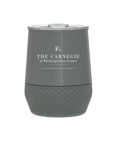 12 oz double wall 18/8 stainless steel thermal tumbler with copper vacuum insulation, push-on lid, matching swivel closure, and removable silicone base.