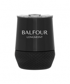 12 oz double wall 18/8 stainless steel thermal tumbler with copper vacuum insulation, push-on lid, matching swivel closure, and removable silicone base.