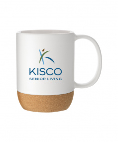 13 oz stoneware: matte color out / gloss color in with cork baseHand wash recommended. Do not microwave. Complies with FDA, Prop 65. 4.625" H x 5" W