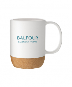 13 oz stoneware: matte color out / gloss color in with cork baseHand wash recommended. Do not microwave. Complies with FDA, Prop 65. 4.625" H x 5" W