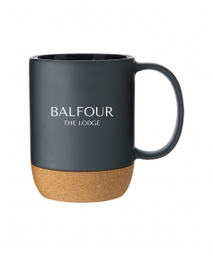 13 oz stoneware: matte color out / gloss color in with cork baseHand wash recommended. Do not microwave. Complies with FDA, Prop 65. 4.625" H x 5" W