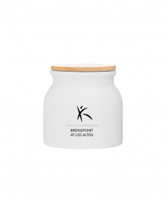 16.9 oz stoneware: matte white out / glossy white in with push-on bamboo lid; Hand wash recommended; Microwave safe with non-metallic imprint; 4 3/16 h x 4 3/16 (w/handle) w ; 500mL.