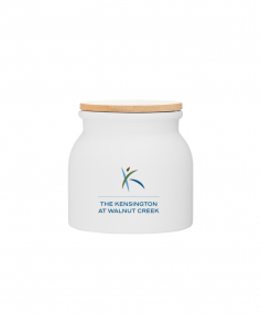 16.9 oz stoneware: matte white out / glossy white in with push-on bamboo lid; Hand wash recommended; Microwave safe with non-metallic imprint; 4 3/16 h x 4 3/16 (w/handle) w ; 500mL.