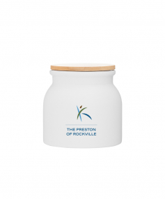 16.9 oz stoneware: matte white out / glossy white in with push-on bamboo lid; Hand wash recommended; Microwave safe with non-metallic imprint; 4 3/16 h x 4 3/16 (w/handle) w ; 500mL.