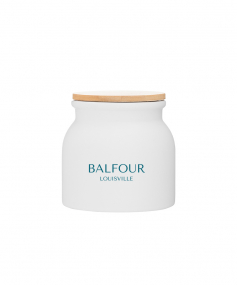 16.9 oz stoneware: matte white out / glossy white in with push-on bamboo lid; Hand wash recommended; Microwave safe with non-metallic imprint; 4 3/16 h x 4 3/16 (w/handle) w ; 500mL.