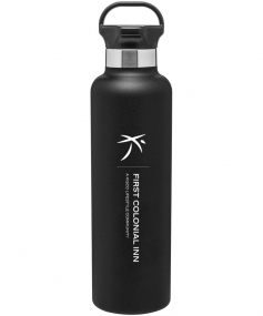 24 oz powder coated double wall 18/8 stainless steel thermal bottle with copper vacuum insulation, threaded gear-shaped insulated lid and carrying handle Complies with FDA, Prop 65. 11.25" H x 3" W