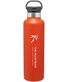 24 oz powder coated double wall 18/8 stainless steel thermal bottle with copper vacuum insulation, threaded gear-shaped insulated lid and carrying handle Complies with FDA, Prop 65. 11.25" H x 3" W