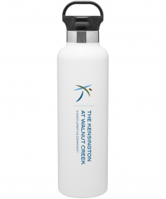 24 oz powder coated double wall 18/8 stainless steel thermal bottle with copper vacuum insulation, threaded gear-shaped insulated lid and carrying handle Complies with FDA, Prop 65. 11.25" H x 3" W