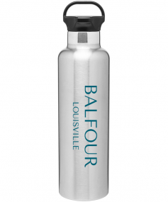 24 oz powder coated double wall 18/8 stainless steel thermal bottle with copper vacuum insulation, threaded gear-shaped insulated lid and carrying handle Complies with FDA, Prop 65. 11.25" H x 3" W