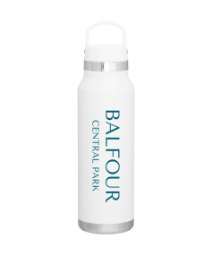 25 oz double wall 18/8 stainless steel thermal bottle with copper vacuum insulation, threaded insulated lid with carrying handle, high polish accent, stainless steel base, and powder coated finish. Hand wash recommended; Do not microwave. Dimensions: 10 H x 3".