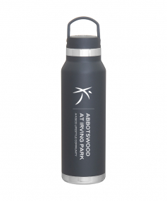 25 oz double wall 18/8 stainless steel thermal bottle with copper vacuum insulation, threaded insulated lid with carrying handle, high polish accent, stainless steel base, and powder coated finish. Hand wash recommended; Do not microwave. Dimensions: 10 H x 3".