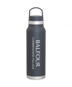 25 oz double wall 18/8 stainless steel thermal bottle with copper vacuum insulation, threaded insulated lid with carrying handle, high polish accent, stainless steel base, and powder coated finish. Hand wash recommended; Do not microwave. Dimensions: 10 H x 3".