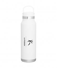 25 oz double wall 18/8 stainless steel thermal bottle with copper vacuum insulation, threaded insulated lid with carrying handle, high polish accent, stainless steel base, and powder coated finish. Hand wash recommended; Do not microwave. Dimensions: 10 H x 3".