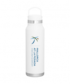 25 oz double wall 18/8 stainless steel thermal bottle with copper vacuum insulation, threaded insulated lid with carrying handle, high polish accent, stainless steel base, and powder coated finish. Hand wash recommended; Do not microwave. Dimensions: 10 H x 3".