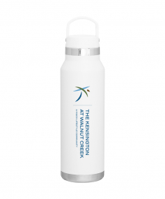 25 oz double wall 18/8 stainless steel thermal bottle with copper vacuum insulation, threaded insulated lid with carrying handle, high polish accent, stainless steel base, and powder coated finish. Hand wash recommended; Do not microwave. Dimensions: 10 H x 3".