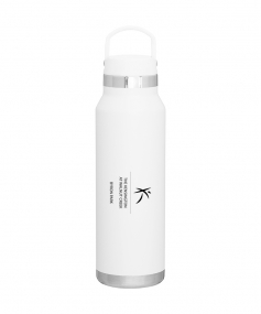 25 oz double wall 18/8 stainless steel thermal bottle with copper vacuum insulation, threaded insulated lid with carrying handle, high polish accent, stainless steel base, and powder coated finish. Hand wash recommended; Do not microwave. Dimensions: 10 H x 3".