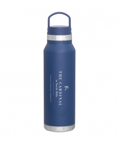 25 oz double wall 18/8 stainless steel thermal bottle with copper vacuum insulation, threaded insulated lid with carrying handle, high polish accent, stainless steel base, and powder coated finish. Hand wash recommended; Do not microwave. Dimensions: 10 H x 3".