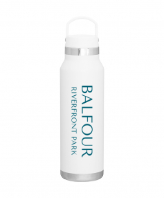 25 oz double wall 18/8 stainless steel thermal bottle with copper vacuum insulation, threaded insulated lid with carrying handle, high polish accent, stainless steel base, and powder coated finish. Hand wash recommended; Do not microwave. Dimensions: 10 H x 3".