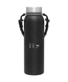 32 oz double wall 18/8 stainless steel thermal bottle with copper vacuum insulation, insulated stainless steel threaded lid, silicone ring, removable strap with buckles, removable clasps, and powder coated finish. Individual gift box. Hand wash recommended. Do not microwave. Complies with FDA, Prop 65. 11" H x 3.1875" W