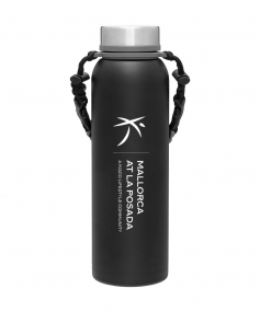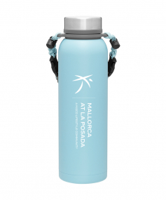 32 oz double wall 18/8 stainless steel thermal bottle with copper vacuum insulation, insulated stainless steel threaded lid, silicone ring, removable strap with buckles, removable clasps, and powder coated finish. Individual gift box. Hand wash recommended. Do not microwave. Complies with FDA, Prop 65. 11" H x 3.1875" W