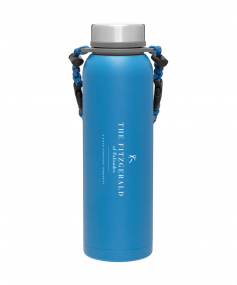 32 oz double wall 18/8 stainless steel thermal bottle with copper vacuum insulation, insulated stainless steel threaded lid, silicone ring, removable strap with buckles, removable clasps, and powder coated finish. Individual gift box. Hand wash recommended. Do not microwave. Complies with FDA, Prop 65. 11" H x 3.1875" W
