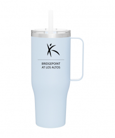 40 oz double wall 18/8 stainless steel thermal mug with copper vacuum insulation, stainless steel rim, dual-purpose push-on clear lid, matching sliding closure, flexible wide silicone straw, and powder coated finish. Individual gift box. Hand wash recommended. Do not microwave. Complies with FDA, Prop 65. 9.75" H x 4" W