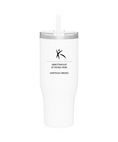 40 oz double wall 18/8 stainless steel thermal tumbler with copper vacuum insulation, stainless steel rim, dual-purpose push-on clear lid, matching sliding closure, flexible wide silicone straw, and powder coated finish