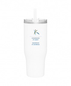 40 oz double wall 18/8 stainless steel thermal tumbler with copper vacuum insulation, stainless steel rim, dual-purpose push-on clear lid, matching sliding closure, flexible wide silicone straw, and powder coated finish