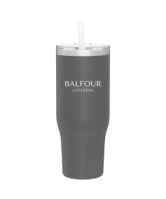40 oz double wall 18/8 stainless steel thermal tumbler with copper vacuum insulation, stainless steel rim, dual-purpose push-on clear lid, matching sliding closure, flexible wide silicone straw, and powder coated finish