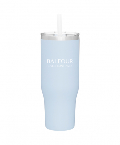 40 oz double wall 18/8 stainless steel thermal tumbler with copper vacuum insulation, stainless steel rim, dual-purpose push-on clear lid, matching sliding closure, flexible wide silicone straw, and powder coated finish