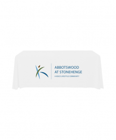 6' Standard PolyPoplin Throw style table cover with one color logo. Designed for quick and easy use while looking great. All corners are rounded meaning they will not gather and lay on the floor. Floor length on all 4 sides. Made from woven polyester. 72" L x 30" D x 29" H