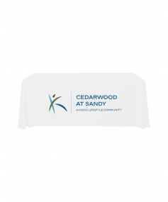 6' Standard PolyPoplin Throw style table cover with one color logo. Designed for quick and easy use while looking great. All corners are rounded meaning they will not gather and lay on the floor. Floor length on all 4 sides. Made from woven polyester. 72" L x 30" D x 29" H