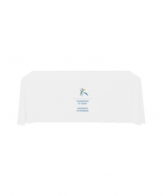 6' Standard PolyPoplin Throw style table cover with one color logo. Designed for quick and easy use while looking great. All corners are rounded meaning they will not gather and lay on the floor. Floor length on all 4 sides. Made from woven polyester. 72" L x 30" D x 29" H