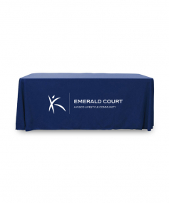 6' Standard PolyPoplin Throw style table cover with one color logo. Designed for quick and easy use while looking great. All corners are rounded meaning they will not gather and lay on the floor. Floor length on all 4 sides. Made from woven polyester. 72" L x 30" D x 29" H