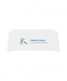 6' Standard PolyPoplin Throw style table cover with one color logo. Designed for quick and easy use while looking great. All corners are rounded meaning they will not gather and lay on the floor. Floor length on all 4 sides. Made from woven polyester. 72" L x 30" D x 29" H