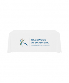 6' Standard PolyPoplin Throw style table cover with one color logo. Designed for quick and easy use while looking great. All corners are rounded meaning they will not gather and lay on the floor. Floor length on all 4 sides. Made from woven polyester. 72" L x 30" D x 29" H