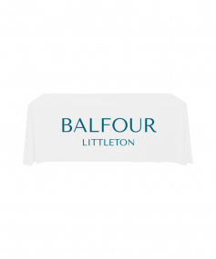 6' Standard PolyPoplin Throw style table cover with one color logo. Designed for quick and easy use while looking great. All corners are rounded meaning they will not gather and lay on the floor. Floor length on all 4 sides. Made from woven polyester. 72" L x 30" D x 29" H