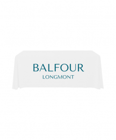 6' Standard PolyPoplin Throw style table cover with one color logo. Designed for quick and easy use while looking great. All corners are rounded meaning they will not gather and lay on the floor. Floor length on all 4 sides. Made from woven polyester. 72" L x 30" D x 29" H
