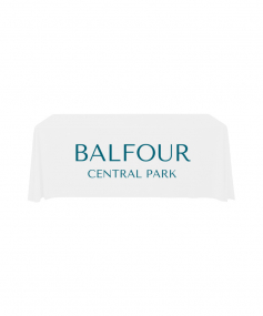 6' Standard PolyPoplin Throw style table cover with one color logo. Designed for quick and easy use while looking great. All corners are rounded meaning they will not gather and lay on the floor. Floor length on all 4 sides. Made from woven polyester. 72" L x 30" D x 29" H