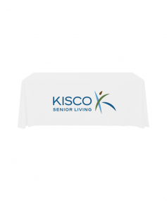 6' Standard PolyPoplin Throw style table cover with one color logo. Designed for quick and easy use while looking great. All corners are rounded meaning they will not gather and lay on the floor. Floor length on all 4 sides. Made from woven polyester. 72" L x 30" D x 29" H