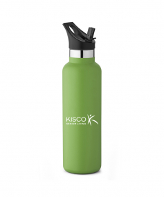20 oz. Narrow-mouth vacuum-insulated bottle. Features a flip-top straw lid with ergonomic top finger loop. Keeps contents cold for 24 hours. Powder coat finish with copper lining, double wall 18/8 stainless steel, proprietary BPA-free insulated lid. Bottle comes with both screw-on lid and straw lid. 11" H x 2 7/8" Diameter.