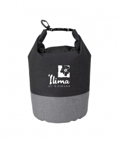 Keeps your items dry and comes in a chic two-tone design. It has a roll top closure with a buckle to connect to other bags and a carabiner clip to connect to a backpack or tether to a raft rope. Made from heathered 300D polyester, it has a 5 liter capacity and can float if dropped in water. Complies with Prop 65. 7" W x 13" H x 7" D