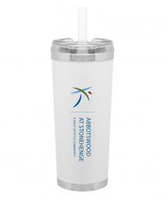 24 oz double wall 18/8 stainless steel thermal tumbler with copper vacuum insulation, stainless steel rim and base, threaded Eastman Tritan lid, snap closure, straw opening, and flexible wide silicone straw.