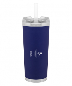 24 oz double wall 18/8 stainless steel thermal tumbler with copper vacuum insulation, stainless steel rim and base, threaded Eastman Tritan lid, snap closure, straw opening, and flexible wide silicone straw.