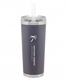 24 oz double wall 18/8 stainless steel thermal tumbler with copper vacuum insulation, stainless steel rim and base, threaded Eastman Tritan lid, snap closure, straw opening, and flexible wide silicone straw.