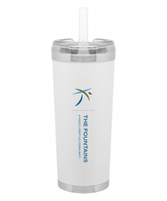 24 oz double wall 18/8 stainless steel thermal tumbler with copper vacuum insulation, stainless steel rim and base, threaded Eastman Tritan lid, snap closure, straw opening, and flexible wide silicone straw.