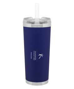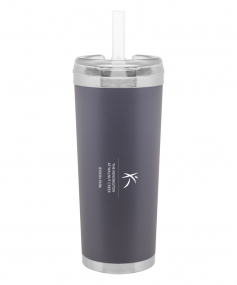 24 oz double wall 18/8 stainless steel thermal tumbler with copper vacuum insulation, stainless steel rim and base, threaded Eastman Tritan lid, snap closure, straw opening, and flexible wide silicone straw.