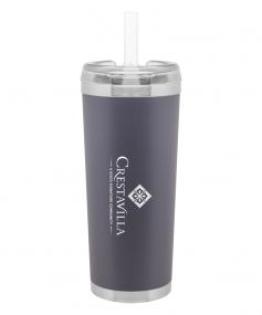 24 oz double wall 18/8 stainless steel thermal tumbler with copper vacuum insulation, stainless steel rim and base, threaded Eastman Tritan lid, snap closure, straw opening, and flexible wide silicone straw.